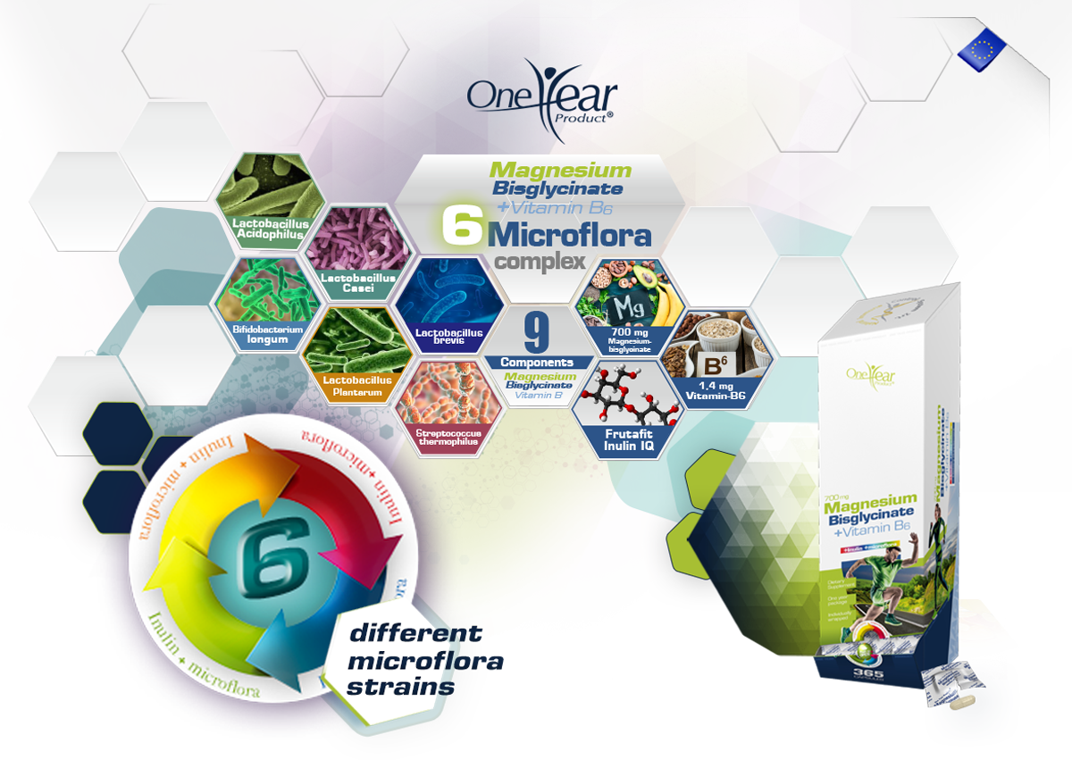 This One Year Product contains six different types of microflora in an increased number of germs, as well as Inulin improving efficiency.